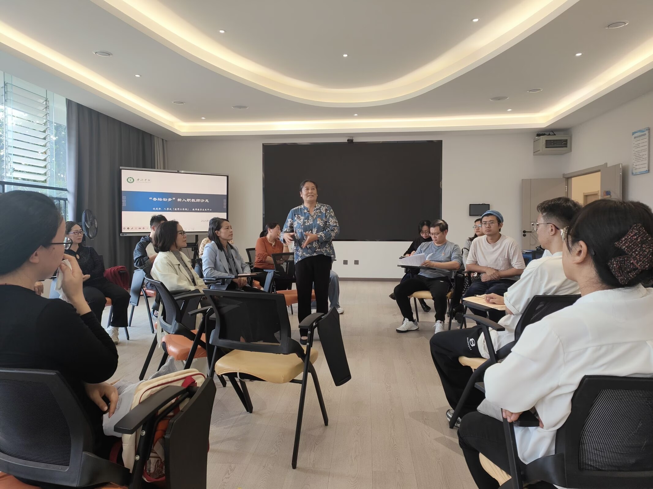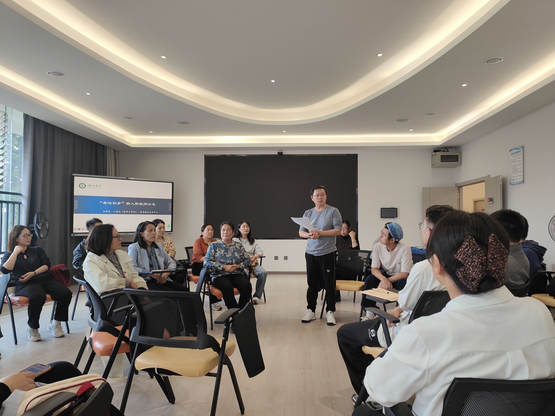 本次活动作为新入职教师培训的重要环节,旨在通过座谈交流,搭建沟通平台,助力新教师成长。沙龙活动中,学校统战部、人事处、教师教学发展中心负责人分别就统战工作、人事政策、教师发展支持体系等内容向新教师作了简要介绍。在交流环节,19名新入职教师踊跃发言,围绕教学、科研、管理及生活服务等方面提出疑问或建议,各部门负责人认真听取并现场回应了教师们的关切。
